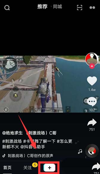 1、首先打开抖音APP,点击下方的【+】按钮。