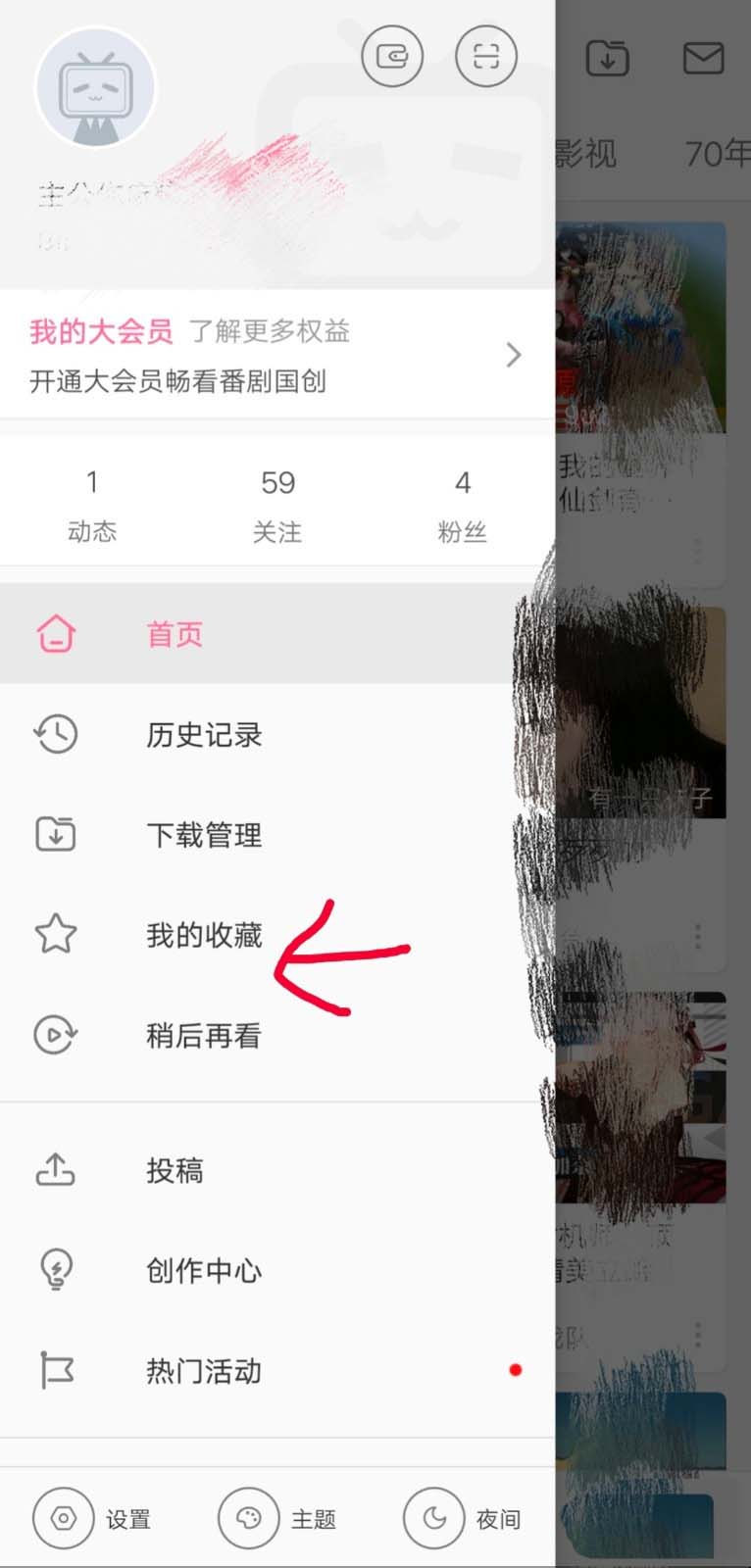 2、点开软件的侧边栏,找到我的收藏