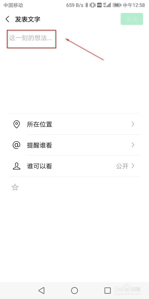 输入自己想要发表的内容,点击右上角发表。