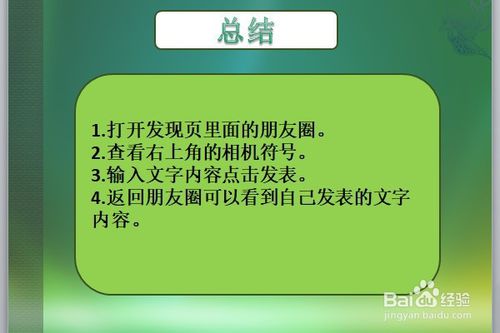 4.返回朋友圈可以看到自己发表的文字内容。