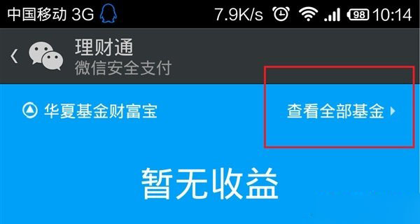 1、由于微信理财通全额宝相对比较隐藏,因此用户无法直接在微信理财通中看到这款产品,而是需要点击右上角的“查看全部基金”按钮之后才能看到“全额宝”理财入口,如下图所示: