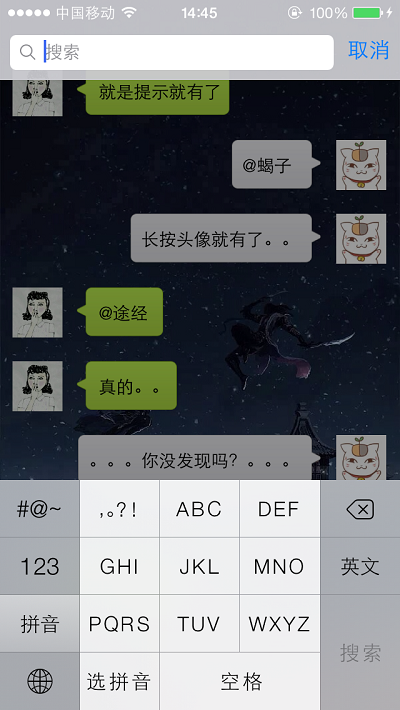 在群聊中如果想要特意提到某位朋友,但是又懒得打他的名字怎么办呢?其实只要长按他的头像,你就会发现在对话框中出现“@XX”的啦~