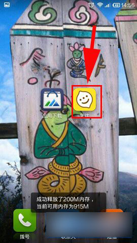 1)首先在手机桌面打开【来往】,接着点击屏幕下方【扎堆】。(如下图所示)