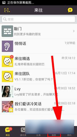1)首先在手机桌面打开【来往】,接着点击下方【搜索】。(如下图所示)