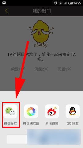 3)接下来点击屏幕右边【敲门】(回答问题此不带解说,略过),敲完门之后点击屏幕下方【分享给好友】。(如下图所示)