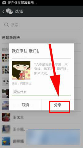 5)最后会弹出个小框框点击右边【分享】即可完成。(如下图所示)