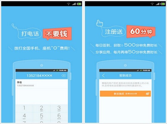 注册即送免费通话时间