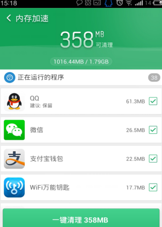 这里我们主要是清理内存,后台运行的软件都会占用内存
