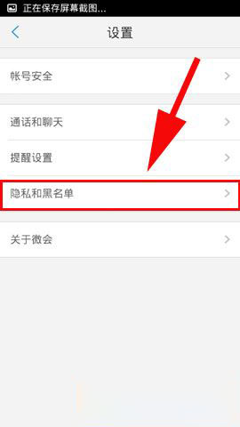 2)点击以后选择屏幕中的【设置】,接着点击【隐私和黑名单】。(如下图所示)