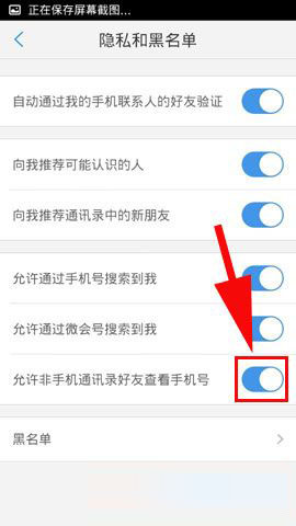 3)最后找到【允许非手机通讯录好友查看手机号】点击后方按钮关闭即可完成。(如下图所示)