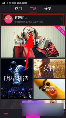 2)进去广场以后点击屏幕上方【有趣的人】,进去以后找到你觉得比较有趣的人在他后方点击【关注】即可完成。(如下图所示)