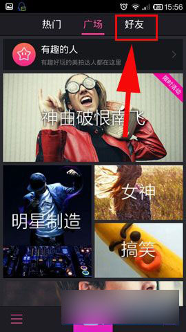 3)关注以后在初始画面屏幕上方点击【好友】,以后就能在【好友】那里了解到你所【关注】的【有趣的人】第一时间分享的有趣视频了!(如下图所示)