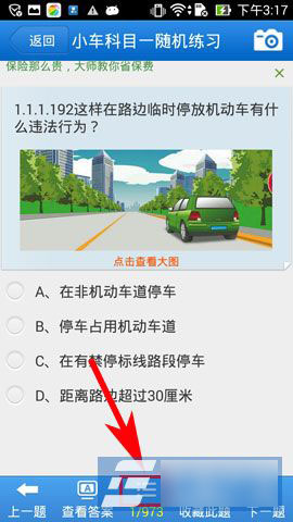 1)打开驾考宝典,选择一个题库点击屏幕下方【三】(如下图所示)