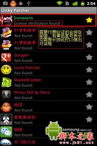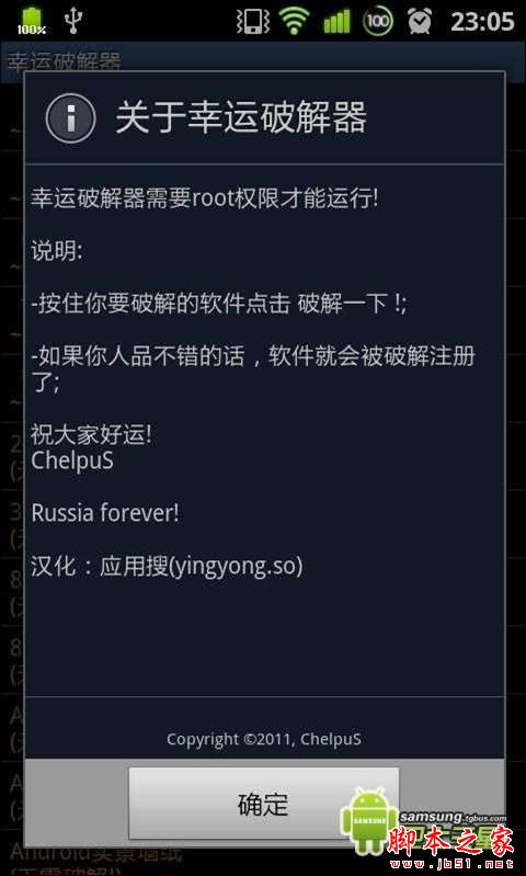 拜其所赐,某些软件不得不频繁更新,可见ChelpuS制作的破解工具强悍之处。使用此软件的前提是你的手机已经获得root权限。