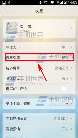 2)接着点击【搜索引擎】,最后选择自己常用的搜索引擎点击一下就可以了。(如下图)