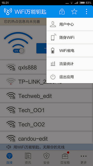 wifi热点数量:四款软件中最多的,但不支持中国移动CMCC、中国电信、中国联通等WLAN