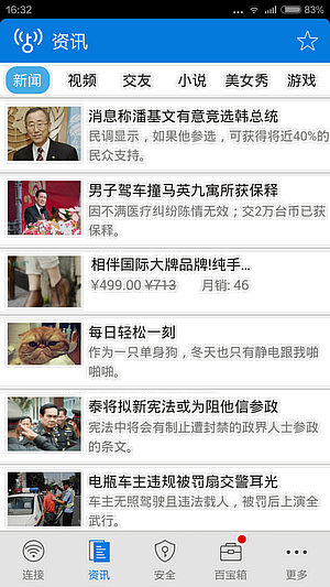 wifi万能钥匙有热门资讯页,使之并不是一个简单的wifi软件,用过便抛诸脑后了,但新闻资讯较为无聊且更新速度一般。