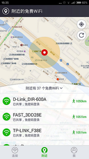 使用感受:部分wifi地址显示可使用,但是连接不上去,号称360用户免费使用中国移动热点,也经常连不上去