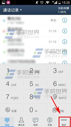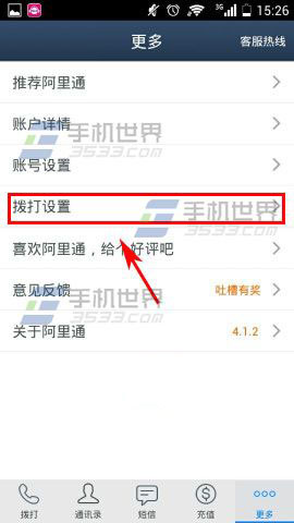 1)首先先打开阿里通电话,进去之后点击【更多】,然后点击【拨打设置】。(如下图)