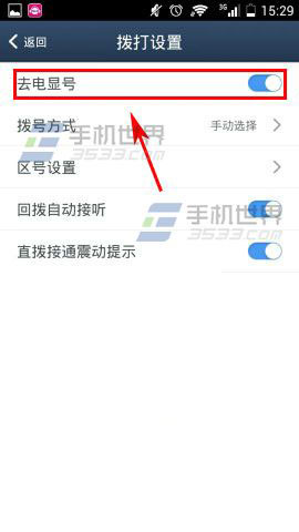 2)最后把【去电显号】打开就可以了。要确保自己的去电显号有激活哦!(如下图)