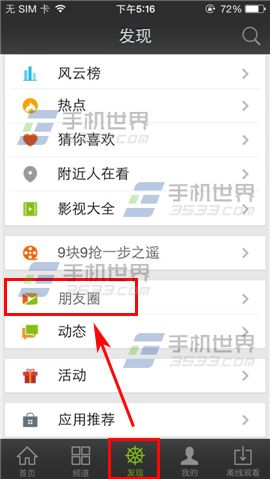 1)首先打开爱奇艺视频,点击【发现】,点击【朋友圈】,进入界面点击【好友】。(如下图)