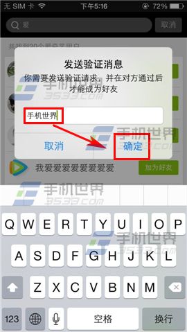 4)弹出窗口可以输入留言文字,点击【确定】,即可等待对方回复。(如下图)