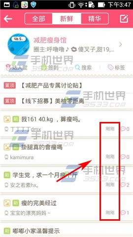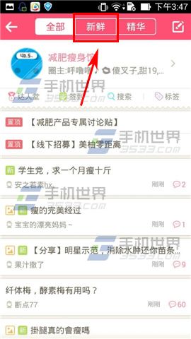 2)点击最上边的【新鲜】,这些都是刚刚“出炉”的新帖子哦。(如下图)