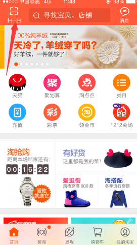 淘宝抢支付宝现金活动火热来袭,手机淘宝进行扫一扫即可免费参与刮奖,领取支付宝现金,本活动仅限12月1日今天!想要获得支付宝红包的用户赶紧抓紧时间抢购吧!