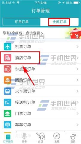1)首先打开去哪儿旅行,在订单服务界面点击【全部订单】,点击【酒店订单】,进入界面点击预订成功的酒店。(如下图)