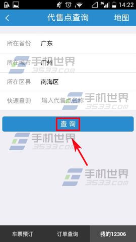 2)然后选择省份、城市及区县点击【查询】就可以看到附近的的代售点了。(如下图)