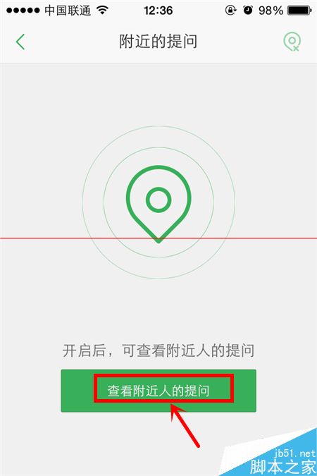 3、未开启附近的提问时的界面如下图所示,点击“查看附近的人的提问”,这样就成功开启了“附近的提问”功能。