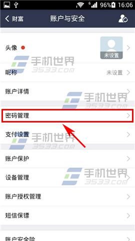 2)点击【账户名称处】,选择【密码设置】。(如下图)