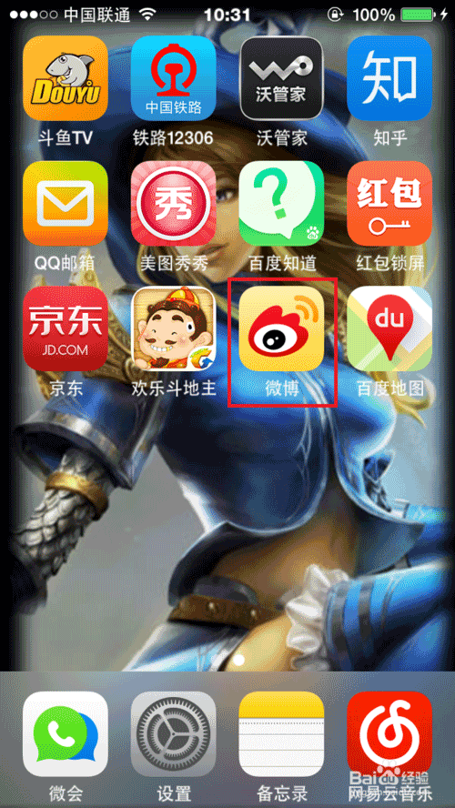 1、点击微博图标,进入微博页面。