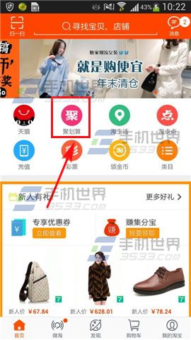 1)首先点击打开【手机淘宝】,在首页点击【聚划算】。(如下图)