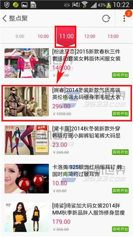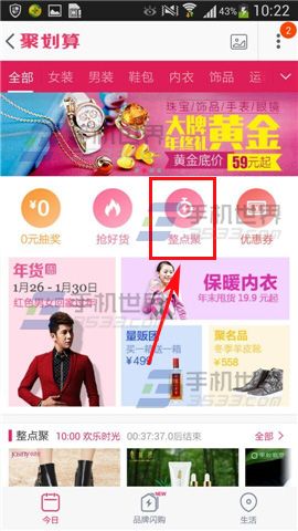 2)进入界面点击【整点聚】,在界面选择还没开团抢购的时间,然后选择要抢购的商品。(如下图)