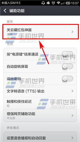 2)【去打开】自动抢红包神器的服务功能哦,然后会跳转到手机的辅助功能页面,在服务一栏点击【关云藏红包神器】按钮。(如下图)