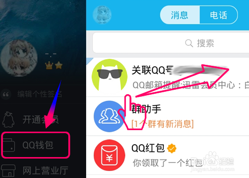 1、打开QQ,手指向右滑屏点击打开QQ钱包