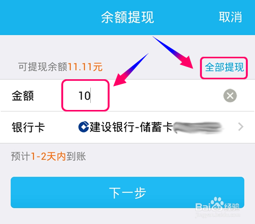 或者手工输入提现金额的大小