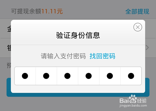 7、输入支付密码,就提示提现成功