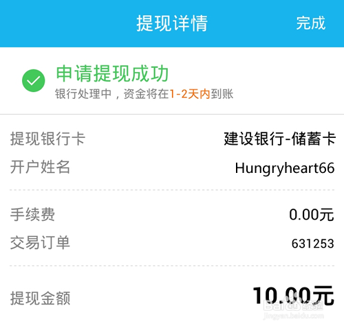 至于这笔提现什么时候到账,最长48小时内到账.但也要看银行工作时间而定