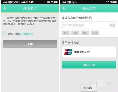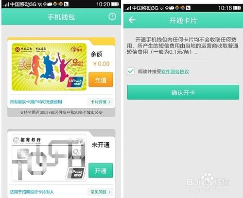 中银V钱包开卡说明需要您在手机插入能正常发送短信的SIM卡,且网络状态良好的情况下,点击中国银行卡片的“充值”按钮,进入开通卡片界面。选择确认开卡,会弹出确认发送短信提示框,如果您选择取消,返回确认开卡界面;用户选择确定,系统发送短信并开卡,开卡成功后直接进入输入充值金额界面。