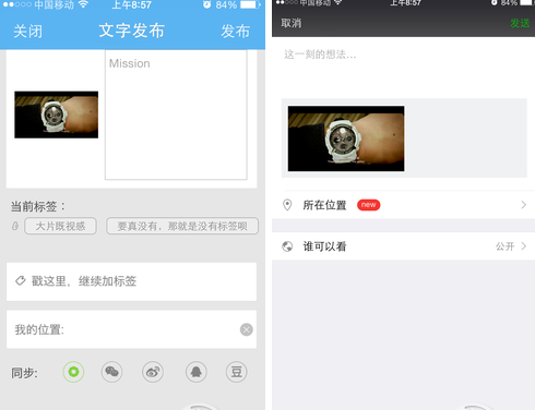 杨柳表示,大片模式(或者叫做“宽屏模式”)是“无心插柳之作”。“源自我们团队中以为爱电影爱拍照的文艺同事,有一天这样处理了一张团队日常照片,产品触角敏感的PM顿时让找到感觉,当机立断决定把这个功能加入足记中。”