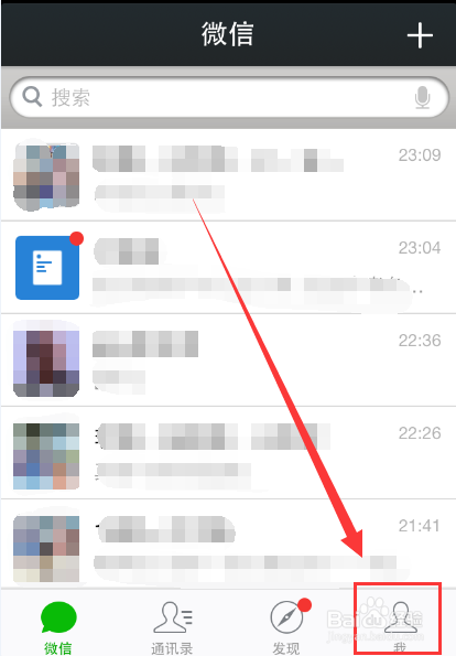 我们首先在手机上打开微信,成功登录后,在主页点击右下角的【我】图标,如下图所示。