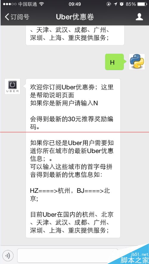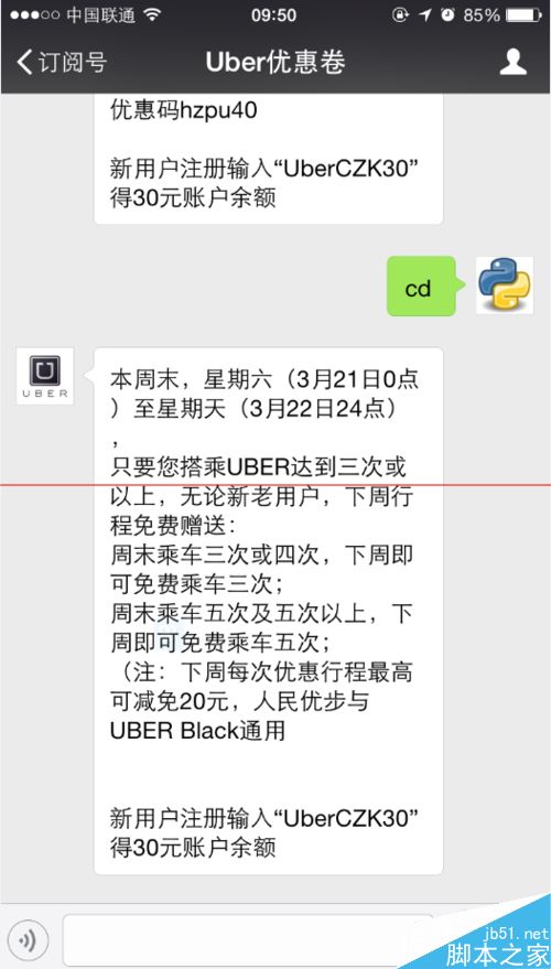 9、我们也可以输入CD,来查看成都的Uber优惠信息
