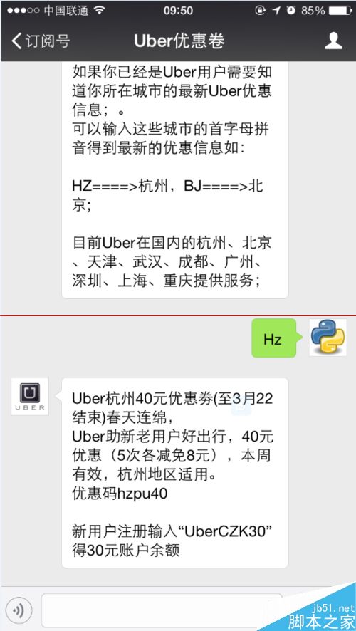 8、然后我们就可以输入HZ,来查看HZ的Uber优惠劵信息了;