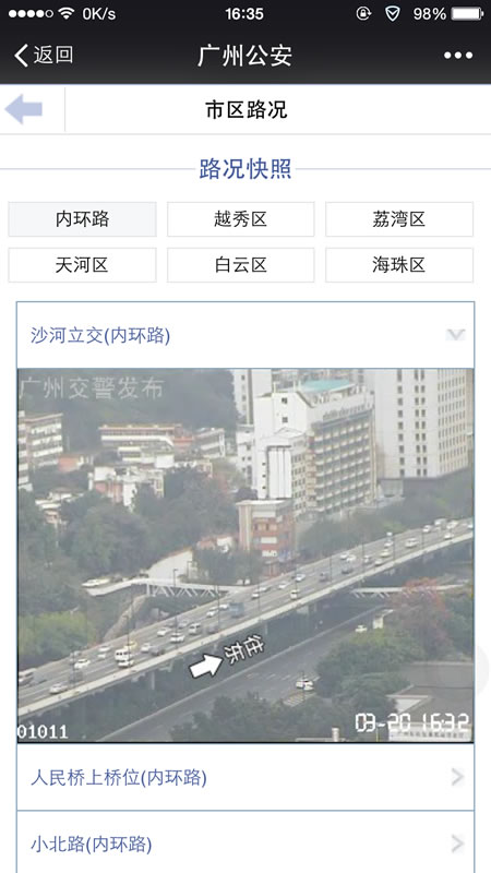 该路段实时监控照片马上呈现。大家按以上步骤就可以体验各项便民服务了!
