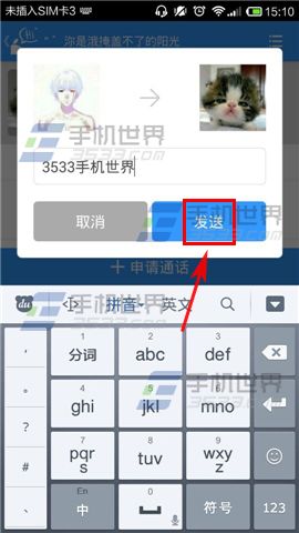 2)点击下方的【申请通话】按钮,说个话题,点击【发送】,等待通过即可。(如下图)