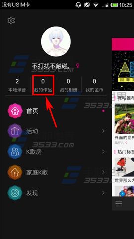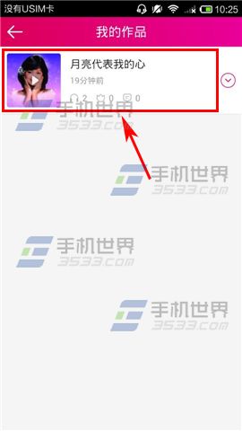 2)弹出菜单栏,点击【我的作品】,进入到作品列表后,点击一首想要分享的【歌曲】。(如下图)