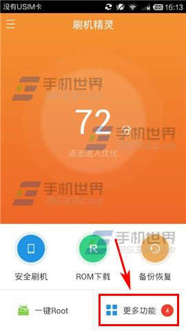 1)打开【刷机精灵】,进入首页点击【更多功能】的选项。(如下图)