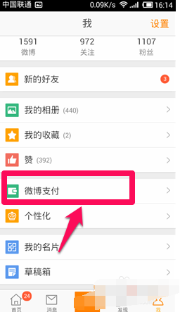 2、在个人中心这里选择微博支付。